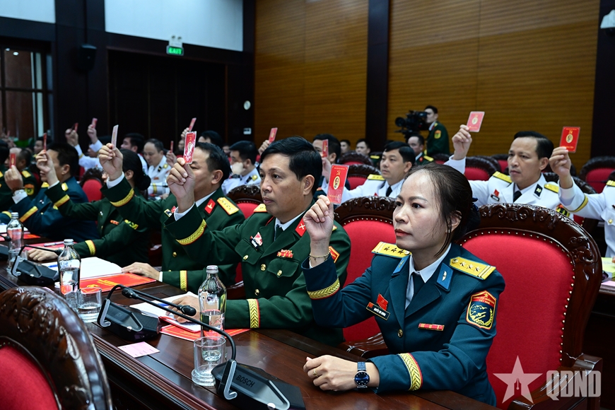 | Các đại biểu biểu quyết thông qua danh sách Đoàn đại biểu Đảng bộ Quân đội dự Đại hội XIV của Đảng. |