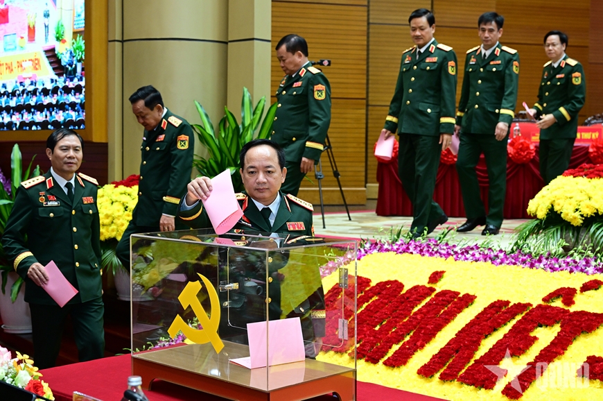 | Đại tướng Trịnh Văn Quyết, Bí thư Trung ương Đảng, Ủy viên Thường vụ Quân ủy Trung ương, Chủ nhiệm Tổng cục Chính trị QĐND Việt Nam bỏ phiếu bầu đại biểu dự khuyết dự Đại hội XIV của Đảng. |