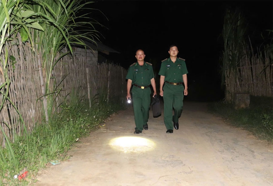 | “Thầy giáo Biên phòng” trên đường đến lớp học buổi tối. |