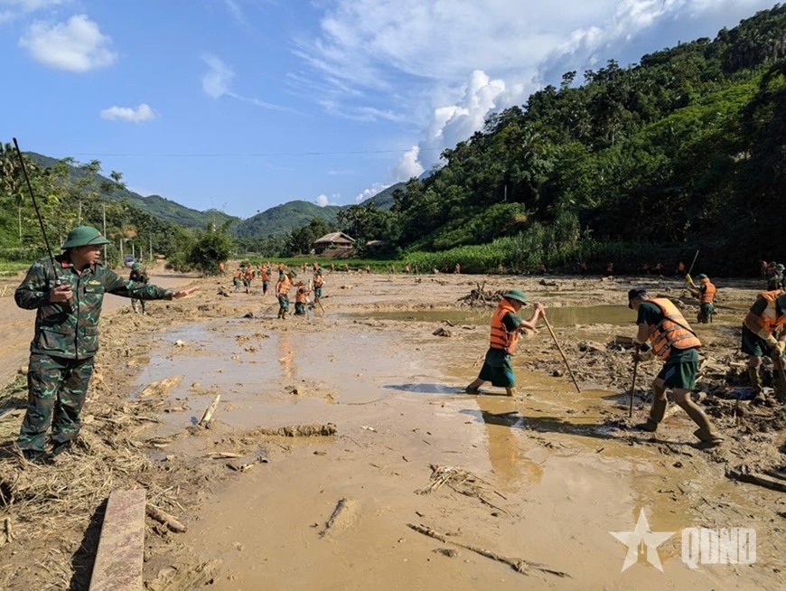 Toàn đơn vị nhanh chóng bắt tay vào tìm kiếm những nạn nhân mất tích. Tại khu vực bị lũ quét đi qua, bùn đất lầy lội, nhiều chỗ sâu đến gối, đến bụng, có chỗ sâu hơn. Các chiến sĩ lội bùn, dùng những vật dụng thô sơ để tìm kiếm nạn nhân. Khi nghi ngờ có nạn nhân nằm bên dưới thì dùng cào, cuốc, xẻng cẩn thận đào, bới, gạt từng lớp bùn đất mỏng để không làm tổn thương thêm di thể nạn nhân. Qua 2 tuần tìm kiếm cứu hộ, đơn vị và các lực lượng tham gia đã tìm được 55/66 người thiệt mạng và cùng nhân dân lo hậu sự chu đáo.
