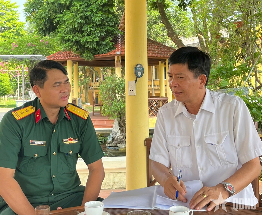 | Trung tá Nguyễn Ngọc Ba và tác giả bài viết. Ảnh: LƯƠNG PHÚC |