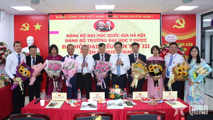 Điều này hoàn toàn có cơ sở bởi Đại hội đại biểu Đảng bộ Trường Đại học Y Dược - ĐHQGHN lần thứ III, nhiệm kỳ 2025 - 2030, diễn ra ngày 17-6-2025, không chỉ tổng kết chặng đường 5 năm phát triển mà còn khẳng định vai trò tiên phong, khát vọng bứt phá của một đơn vị nhưng đầy tiềm lực trong ĐHQGHN. Từ 7 đảng viên ban đầu, đến nay Đảng bộ nhà trường đã có gần 300 đảng viên, tổ chức thành 5 chi bộ trực thuộc và một Đảng bộ bộ phận tại Bệnh viện Đại học Y Dược, đơn vị trực thuộc nhà trường. Tổ chức đảng được vận hành bài bản, nền nếp; công tác giáo dục lý luận, kiểm tra, giám sát, phát triển đảng viên trẻ được thực hiện đồng bộ, hiệu quả.