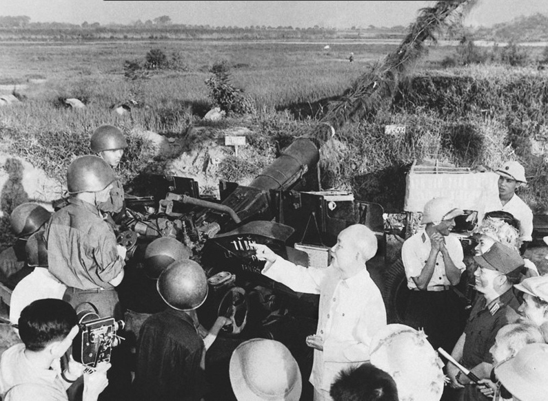 Chủ tịch Hồ Chí Minh thăm các chiến sĩ lực lượng phòng không bảo vệ Thủ đô Hà Nội, năm 1966. Ảnh tư liệu
