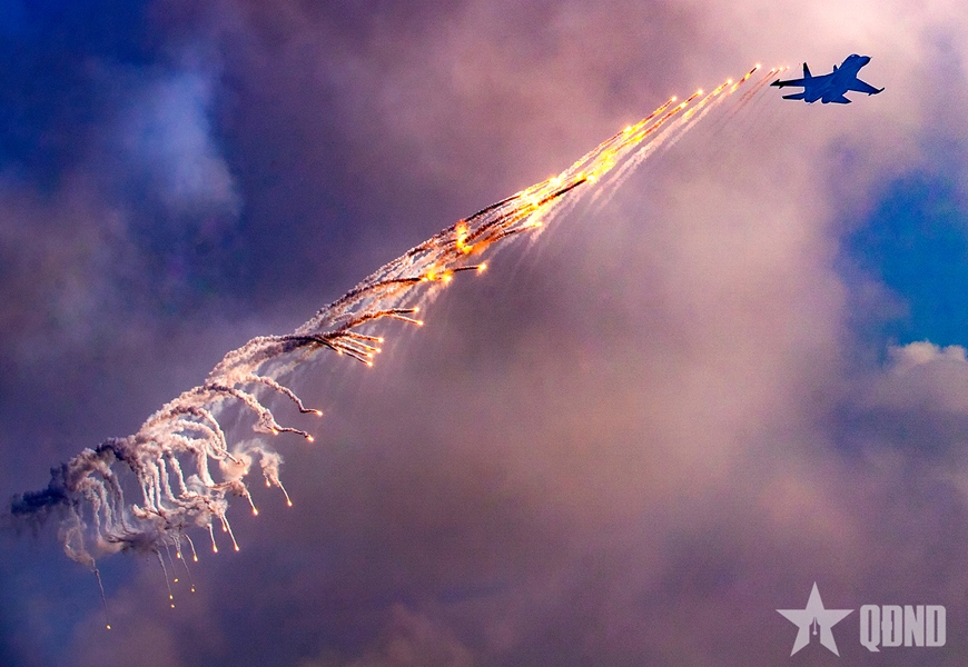 Sau nhiều tháng tập luyện gian khổ, các phi công lái tiêm kích Su-30MK2 có màn biểu diễn thả bẫy nhiệt mãn nhãn trên Quảng trường Ba Đình lịch sử, tại Lễ kỷ niệm 80 năm Cách mạng Tháng Tám thành công và Quốc khánh 2-9.
