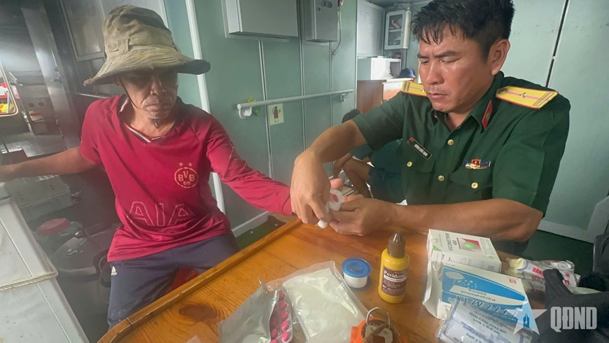 Mỗi lần thực hiện nhiệm vụ trên biển, cán bộ, chiến sĩ vừa bảo vệ chủ quyền, vừa chủ động tổ chức tuyên truyền, cấp cứu, khám bệnh, cấp thuốc cho ngư dân.