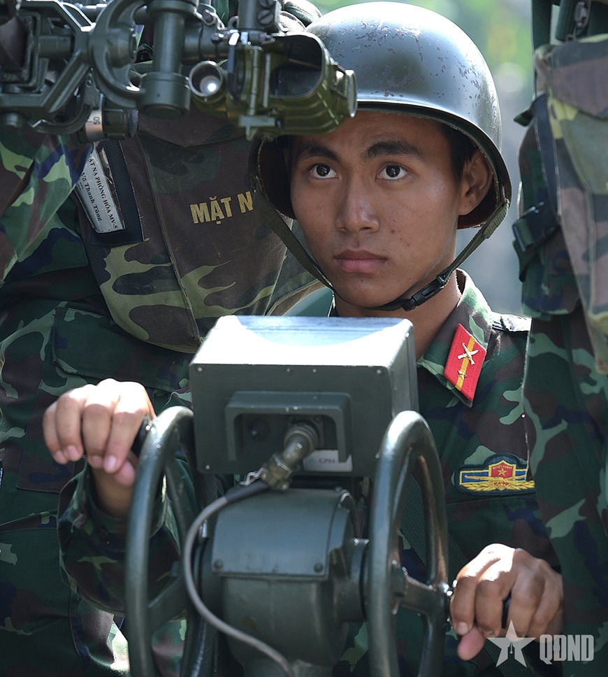 | Pháo thủ tập trung quan sát, bám mục tiêu. |