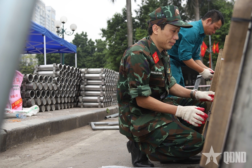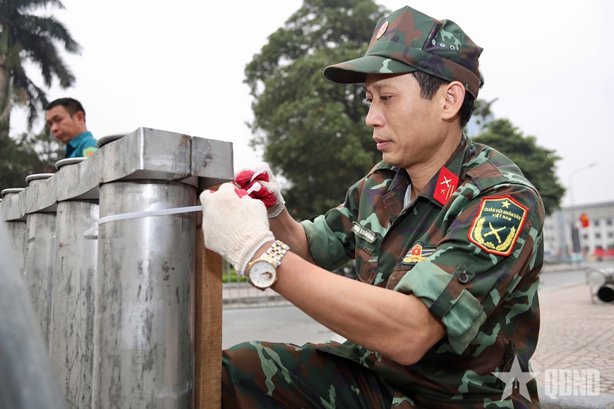 Các chi tiết trong trận địa pháo hoa được Quân đội lắp ráp cẩn thận, từng bước, bảo đảm tuyệt đối an toàn trước khi đưa vào sử dụng.