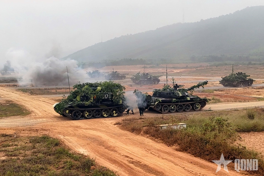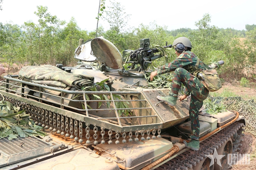 | Các kíp xe tăng vào vị trí chiến đấu. |