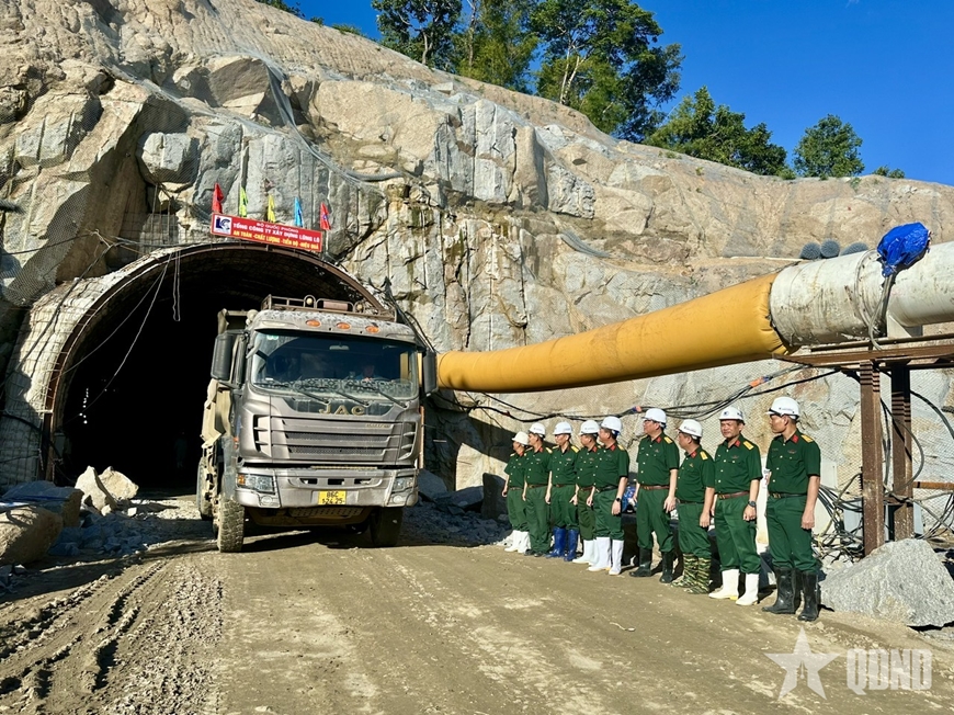 | Phương tiện vận chuyển của Tổng công ty vận chuyển đất, đá ra khỏi đường hầm. |
