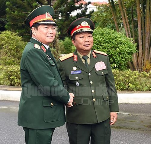 Đại tướng Ngô Xuân Lịch và Thượng tướng Chăn-xạ-mỏn Chăn-nha-lạt.