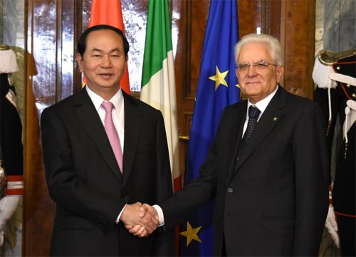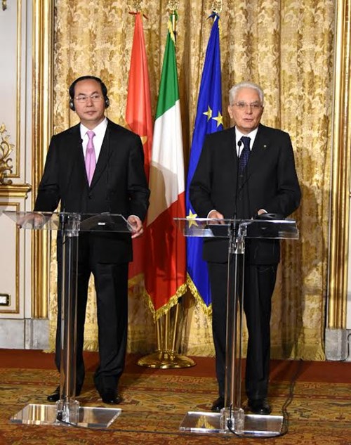 Chủ tịch nước Trần Đại Quang cảm ơn sự đón tiếp trọng thị của Ngài Tổng thống và nhân dân I-ta-li-a dành cho Đoàn; bày tỏ sự cảm thông và chia sẻ với người dân I-ta-li-a về những thiệt hại do các vụ động đất xảy ra liên tục vừa qua tại miền Trung I-ta-li-a. Chủ tịch nước Trần Đại Quang khẳng định, Việt Nam luôn coi trọng quan hệ hữu nghị và hợp tác nhiều mặt với I-ta-li-a trong tổng thể quan hệ với Liên minh châu Âu.