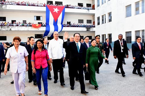 Chủ tịch nước Trần Đại Quang bày tỏ vui mừng trở lại thăm Cu-ba trong bối cảnh Việt Nam tổ chức thành công Đại hội Đảng toàn quốc lần thứ XII trong tháng 1-2016 và Cu-ba tổ chức thành công Đại hội Đảng VII vào tháng 4-2016; Cùng các đồng chí lãnh đạo Cu-ba trao đổi, thống nhất các biện pháp nhằm tiếp tục làm sâu sắc hơn nữa mối quan hệ đoàn kết anh em và hợp tác toàn diện Việt Nam - Cu-ba. Chủ tịch nước Trần Đại Quang bày tỏ ngưỡng mộ truyền thống đấu tranh bất khuất và sự kiên cường, quả cảm của nhân dân Cu-ba; chân thành chúc mừng Cu-ba về những thành tựu kinh tế - xã hội và những thắng lợi trên mặt trận đối ngoại đạt được thời gian qua; tái khẳng định tình đoàn kết và sự ủng hộ trước sau như một của Đảng, Nhà nước và nhân dân Việt Nam đối với sự nghiệp Cách mạng chính nghĩa của nhân dân Cu-ba anh em.