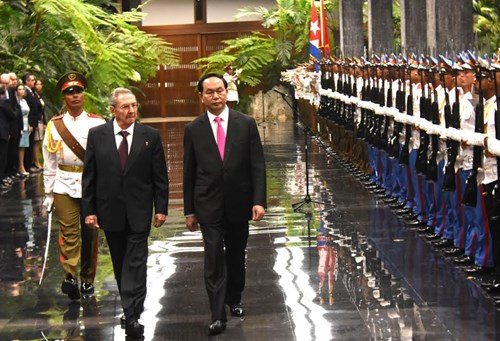 Chủ tịch Ra - un Ca-xtơ-rô nhiệt liệt chào mừng Chủ tịch nước Trần Đại Quang, Phu nhân và Đoàn sang thăm chính thức Cu-ba, góp phần tiếp tục làm sâu sắc hơn nữa mối quan hệ đoàn kết anh em, hợp tác toàn diện và tin cậy lẫn nhau giữa Đảng, Nhà nước và nhân dân hai nước; khẳng định Cu-ba trân trọng tình đoàn kết và sự ủng hộ quý báu của Việt Nam đối với sự nghiệp Cách mạng Cu-ba từ trước tới nay. Chủ tịch Ra - un Ca-xtơ-rô cũng chúc mừng Việt Nam về những thành tựu Đổi mới to lớn và toàn diện đạt được trong ba thập kỷ qua, không ngừng cải thiện đời sống vật chất và tinh thần của các tầng lớp nhân dân, cũng như nâng cao vị thế quốc tế của đất nước; đồng thời, bày tỏ Cu-ba coi trọng kinh nghiệm và các bài học của Việt Nam đúc kết được trong công cuộc xây dựng và bảo vệ Tổ quốc.