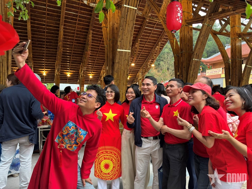 | Du khách chụp ảnh kỷ niệm tại Ngọa Vân (Quảng Ninh). |