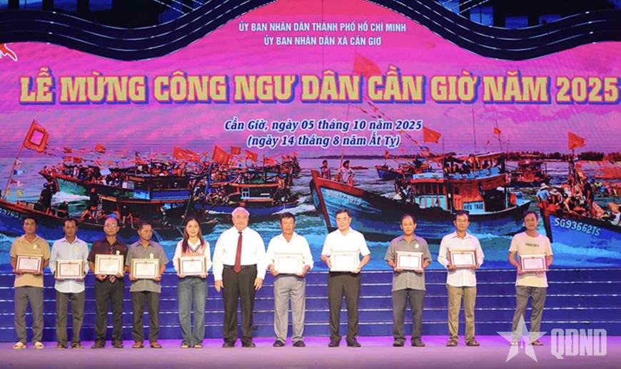 Các ngư dân có thành tích được UBND xã Cần Giờ, TP Hồ Chí Minh tôn vinh tại Lễ hội Nghinh Ông Cần Giờ năm 2025.