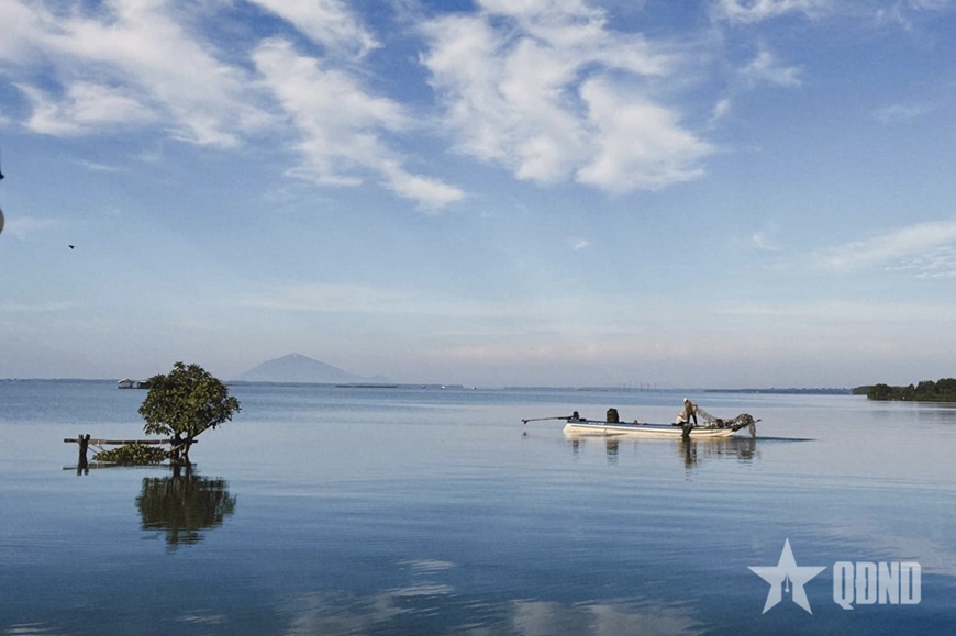 | Người dân địa phương thả chài, kéo cá giữa không gian sông nước bình yên. |