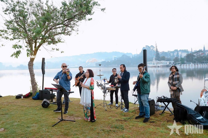 | Biểu diễn âm nhạc phục vụ miễn phí người dân và du khách bên hồ Xuân Hương. |