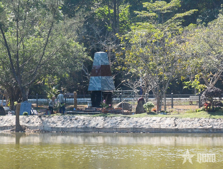 Rảo bước trên đường hoa xuân được thiết kế bên hồ mô phỏng Biển Đông, chúng tôi choáng ngợp trong sắc màu đẹp mắt, tinh tế của những tiểu cảnh, chậu hoa bon sai đa dạng màu sắc. Gần đó là mô hình quần đảo Hoàng Sa, Trường Sa vừa kịp hoàn thành đúng dịp Tết Nguyên đán.