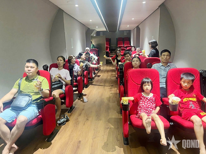 Du khách xem phim lịch sử trong phòng chiếu phim trên mô hình máy bay vận tải C130.