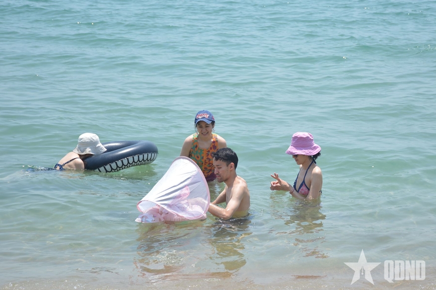 Tắm biển buổi trưa là sự lựa chọn của nhiều du khách để giải nhiệt. |