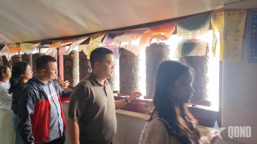 | Du khách xoay kim luân trong hành trình tham quan, chiêm bái. |