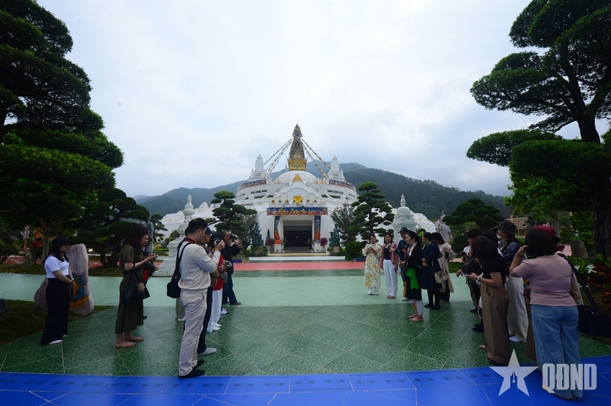 | Du khách tham quan tại Đại Bảo Tháp Mandala Tây Thiên. |