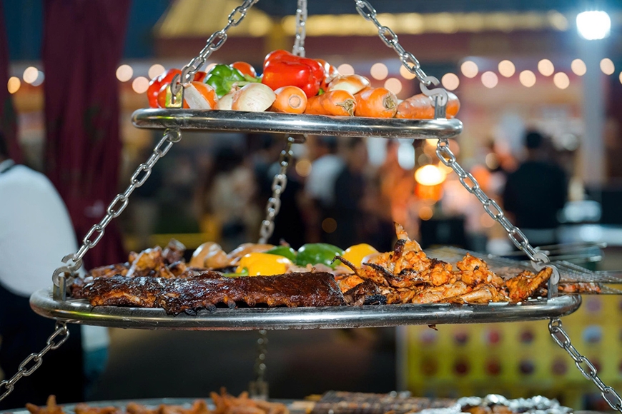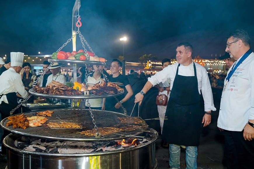 Đi kèm với đó là đại tiệc BBQ không biên giới với mùi thơm quyến rũ của rất nhiều loại đồ nướng nổi tiếng khắp nơi trên thế giới: Bê quay nguyên con vàng ruộm, đùi cừu nướng thảo mộc dậy hương, tôm hùm Nha Trang nướng bơ tỏi thơm ngậy, hay hàu Nhật nướng phô mai béo ngọt tan ngay đầu lưỡi…
