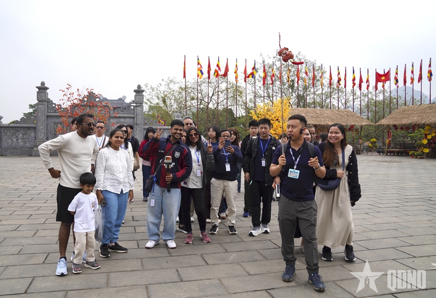 Ngay từ sáng sớm, Chùa Bái Đính (phường Tây Hoa Lư) đã đông dòng người về chiêm bái. Từng bước chân du khách hòa cùng tiếng chuông ngân, khói hương quyện trong nắng mới. Không chỉ khách nội địa, nhiều đoàn khách quốc tế đến từ Ấn Độ, Trung Quốc và châu Âu... cũng chọn nơi đây làm điểm dừng chân đầu năm-một tín hiệu đầy lạc quan cho bức tranh du lịch 2026.