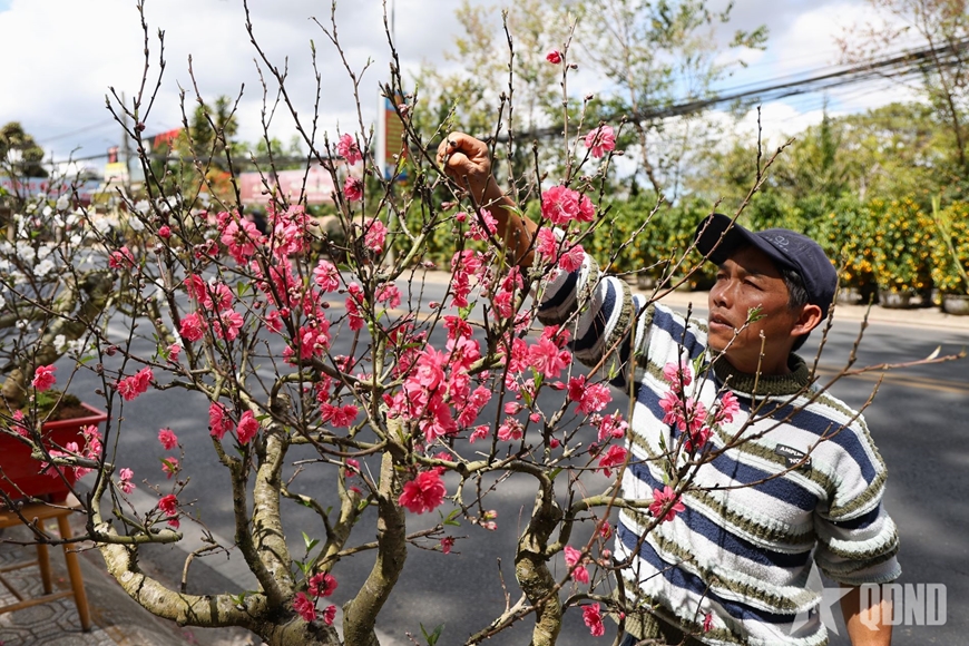 Anh Nguyễn Chí Cường, sinh năm 1976, ngụ tại phường Xuân Hương-Đà Lạt, một người bán hoa đào trên đường Trần Hưng Đạo cho biết, gia đình anh làm nghề trồng hoa đào đã nhiều năm. Năm nay, anh đưa ra thị trường 120 chậu đào bon sai gồm đào bích, đào phai và đào trắng cánh kép. Giá bán dao động từ 3 triệu đến 10 triệu đồng/chậu.