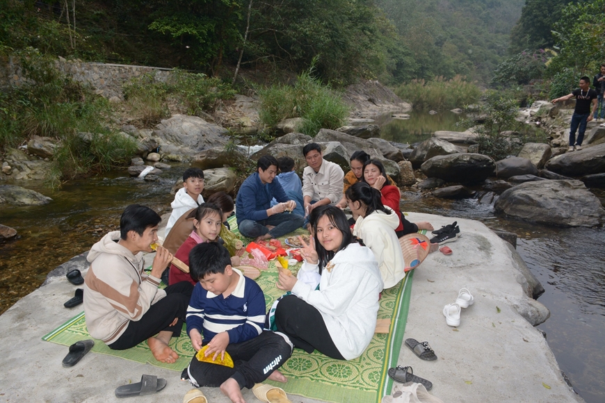 | Du khách có thể tổ chức ăn uống trên một phiến đá dưới lòng suối, sau đó rác sẽ được thu gom, tập kết đúng nơi quy định. |