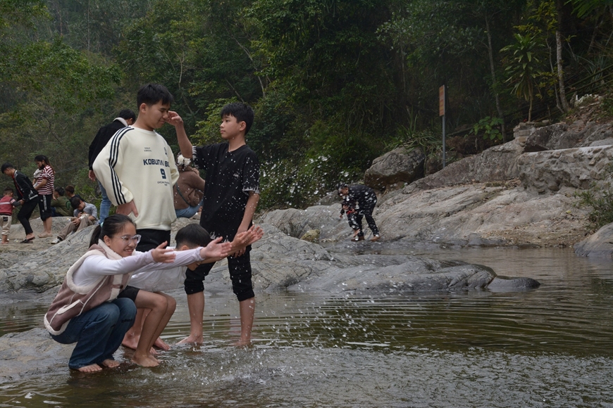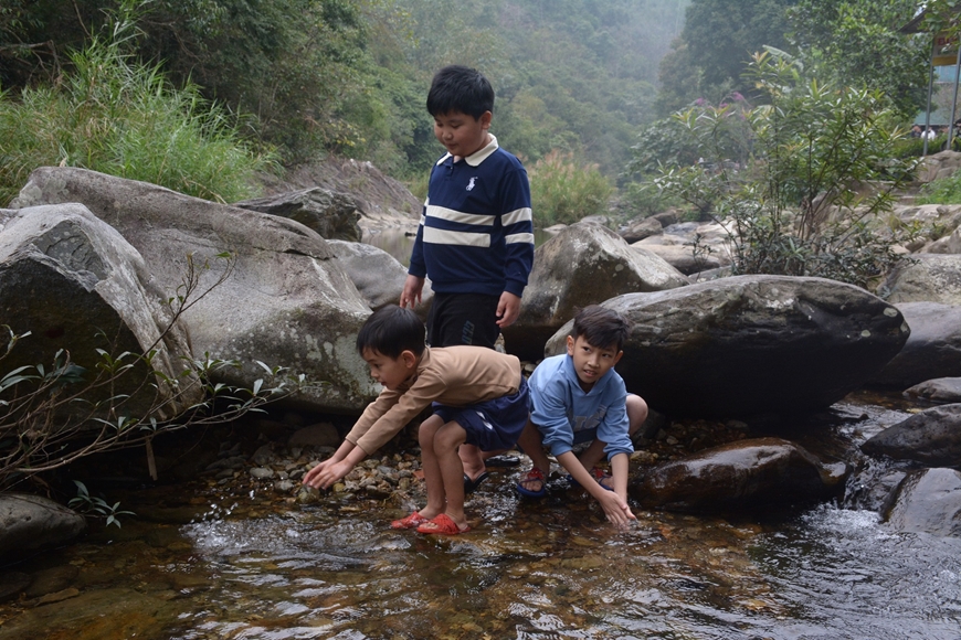 | Nước suối ở Tây Thiên sạch sẽ, an toàn, trẻ em có thể thỏa sức vui chơi. |