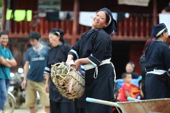 Niềm vui của người dân khi được những đoàn du lịch từ thiện đến thăm và trao quà. |