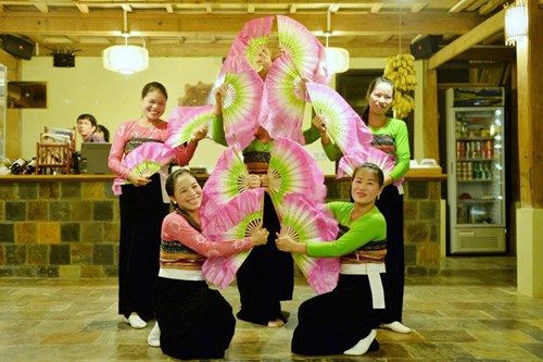 Nhân viên Mai Châu Villas tạo ấn tượng tốt khi có các chương trình giao lưu với du khách. Ảnh: Hoàng Hà