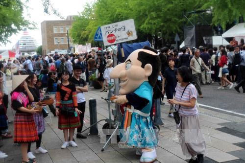 Trang phục dân tộc Việt Nam nổi bật trong Lễ hội Việt Nam tại tỉnh Kanagawa. Ảnh: TTXVN