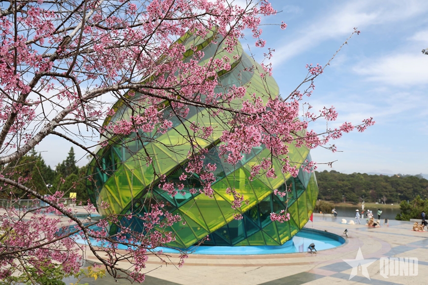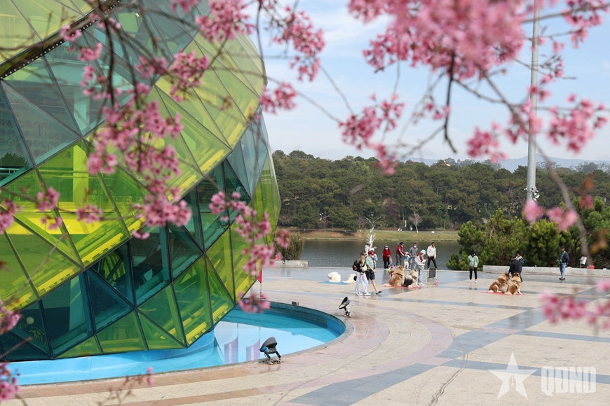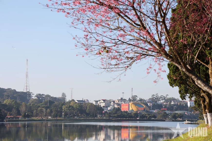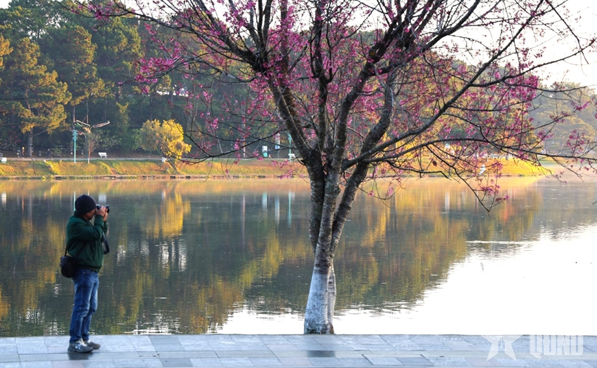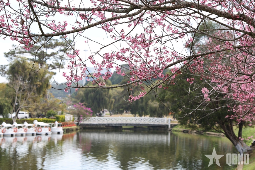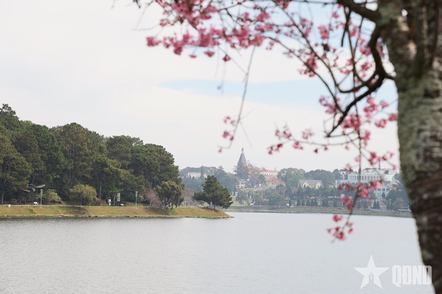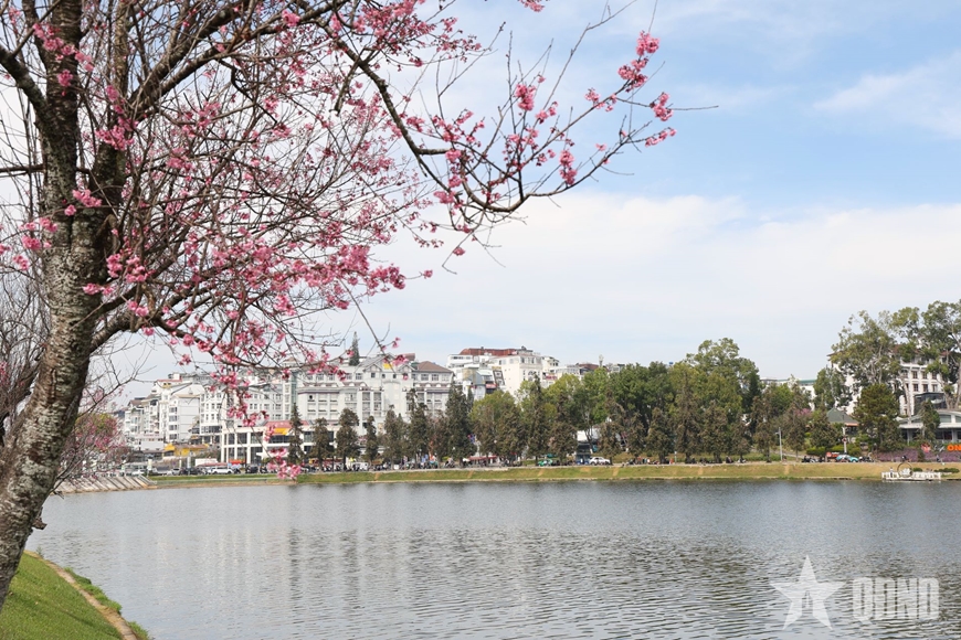 | Hồ Xuân Hương (Đà Lạt) trong mùa hoa mai anh đào. |