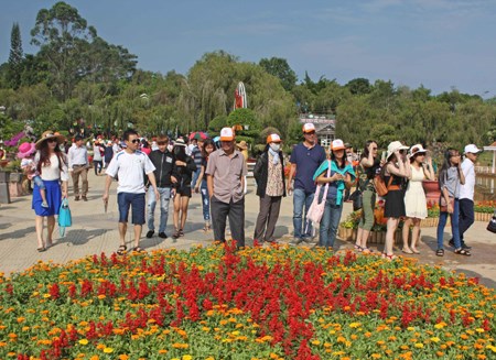 Du khách tham quan Vườn hoa TP Đà Lạt trong dịp lễ 30-4 và 1-5.