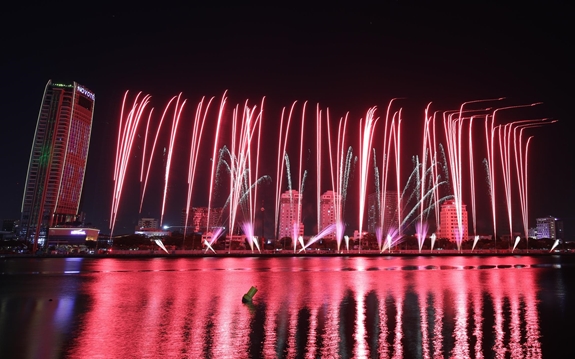 Trong giai điệu đầy lôi cuốn của những bản nhạc cổ điển tới nhạc dance sôi động, đội Pyrotex Fireworx (Anh) trình diễn màn pháo hoa ấn tượng và đầy cảm xúc, vẽ lên bức tranh của sắc màu và hiệu ứng âm nhạc sống động. Đội Hunan Jingtai Fireworks (Trung Quốc) đem đến DIFF 2019 phần trình diễn kết hợp tài tình giữa nghệ thuật pháo hoa truyền thống với công nghệ mới, “biến” bầu trời đêm Đà Nẵng thành một dòng sông ánh sáng trong câu chuyện ly kì, mang màu sắc cổ tích về loài linh vật từng xuất hiện trong thần thoại Trung Hoa với nhiều hiệu ứng và màu sắc tươi sáng.
