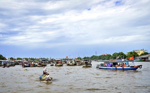 Chợ nổi Cái Răng, một trong những điểm du lịch tiêu biểu tại Đồng bằng sông Cửu Long.