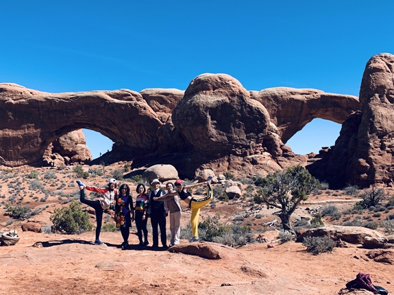 Du khách Việt Nam tham quan, chụp ảnh tại vòm đá Công viên Quốc gia Arches, Mỹ. Ảnh: NGUYỄN HƯƠNG |