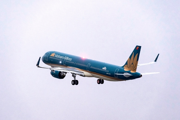 Máy bay của Vietnam Airlines sẵn sàng cất cánh trên đường bay mới. |