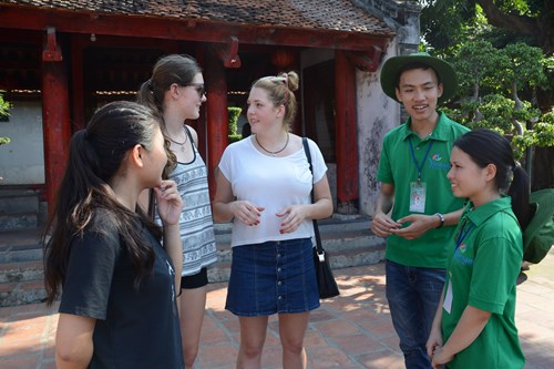 Đội sinh viên hỗ trợ du lịch Hà Nội tại Văn Miếu-Quốc Tử Giám (Hà Nội) góp phần tạo thiện cảm cho du khách bằng nhiệt huyết tuổi trẻ.