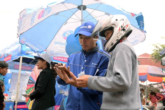 Nhân viên của VNPT Bắc Hà - Lào Cai giới thiệu dịch vụ tới khách hàng. |