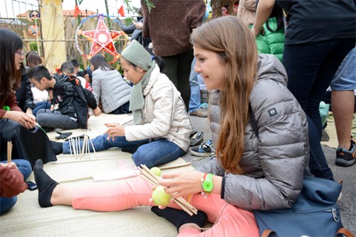 Khách quốc tế thích thú với các trò chơi dân gian truyền thống của Việt Nam.