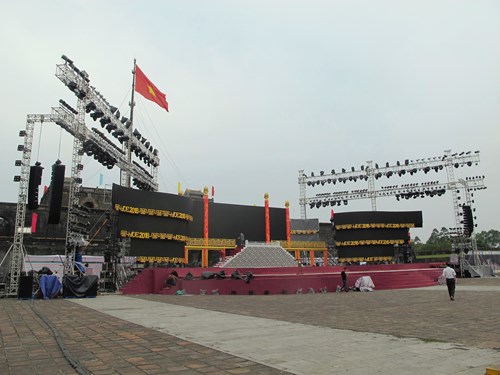 Sân khấu tại Quảng trường Ngọ Môn nơi diễn ra Lễ khai mạc Festival được chuẩn bị với sức chứa hơn 6.000 người. |