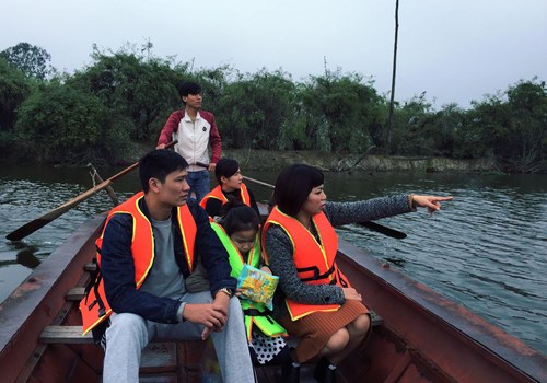 Du khách thích thú khi ghé chơi “Vương quốc cò”. |
