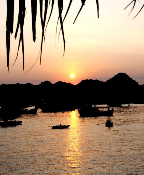 Khi mặt trời xuống thấp và dần khuất hẳn sau ngọn núi cũng là lúc những ánh đèn màu bắt đầu xuất hiện khiến cho cảng cá trên đảo Cát Bà (Hải Phòng) mang một vẻ đẹp thanh bình, yên ả và cũng thật lung linh, huyền ảo.