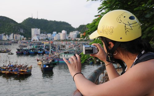 Du khách tranh thủ ghi lại những khoảnh khắc trước hoàng hôn.