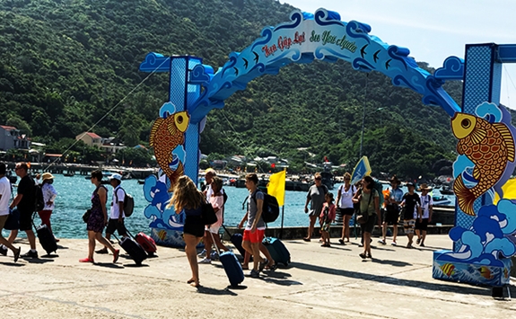 Du khách ra tham quan Cù Lao Chàm dịp nghỉ lễ Giỗ tổ Hùng Vương. Ảnh: TTXVN. |