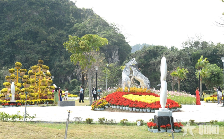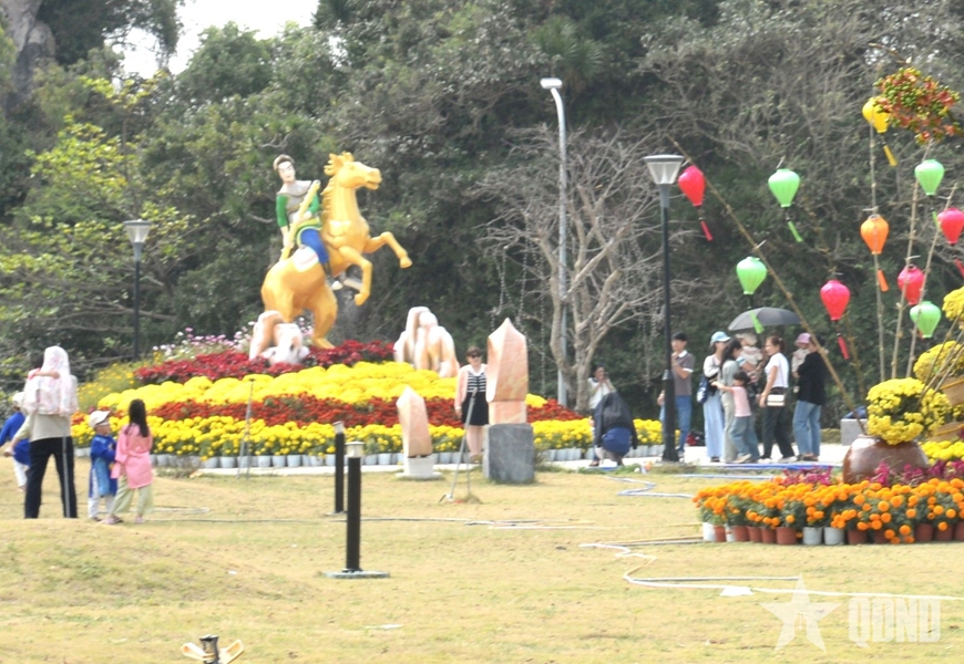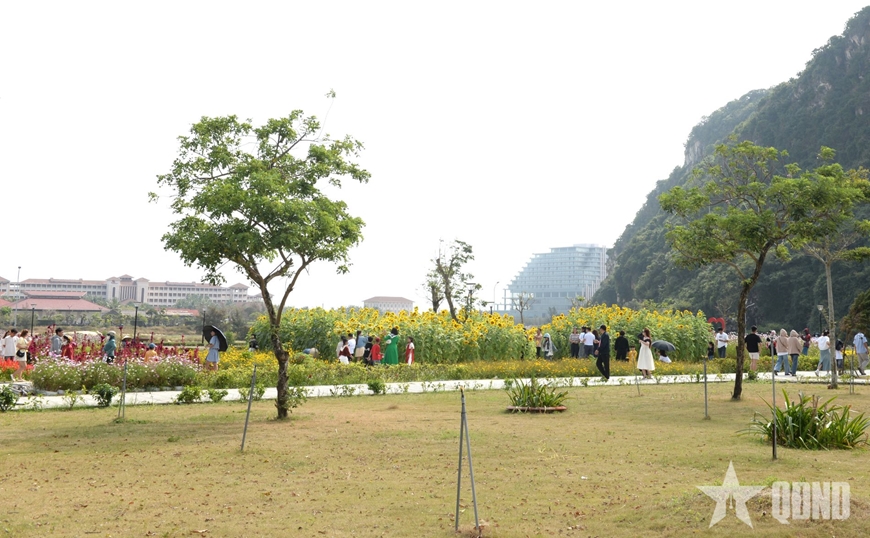| Người dân và du khách tham quan, chụp ảnh tại vườn hoa Xuân (phường Ngũ Hành Sơn, TP Đà Nẵng). |