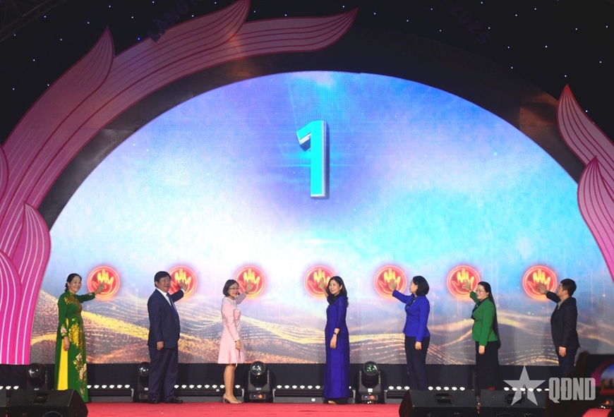 Các đại biểu bấm nút khai mạc Liên hoan Ẩm thực và Du lịch làng nghề, phố nghề Hà Nội năm 2025.
